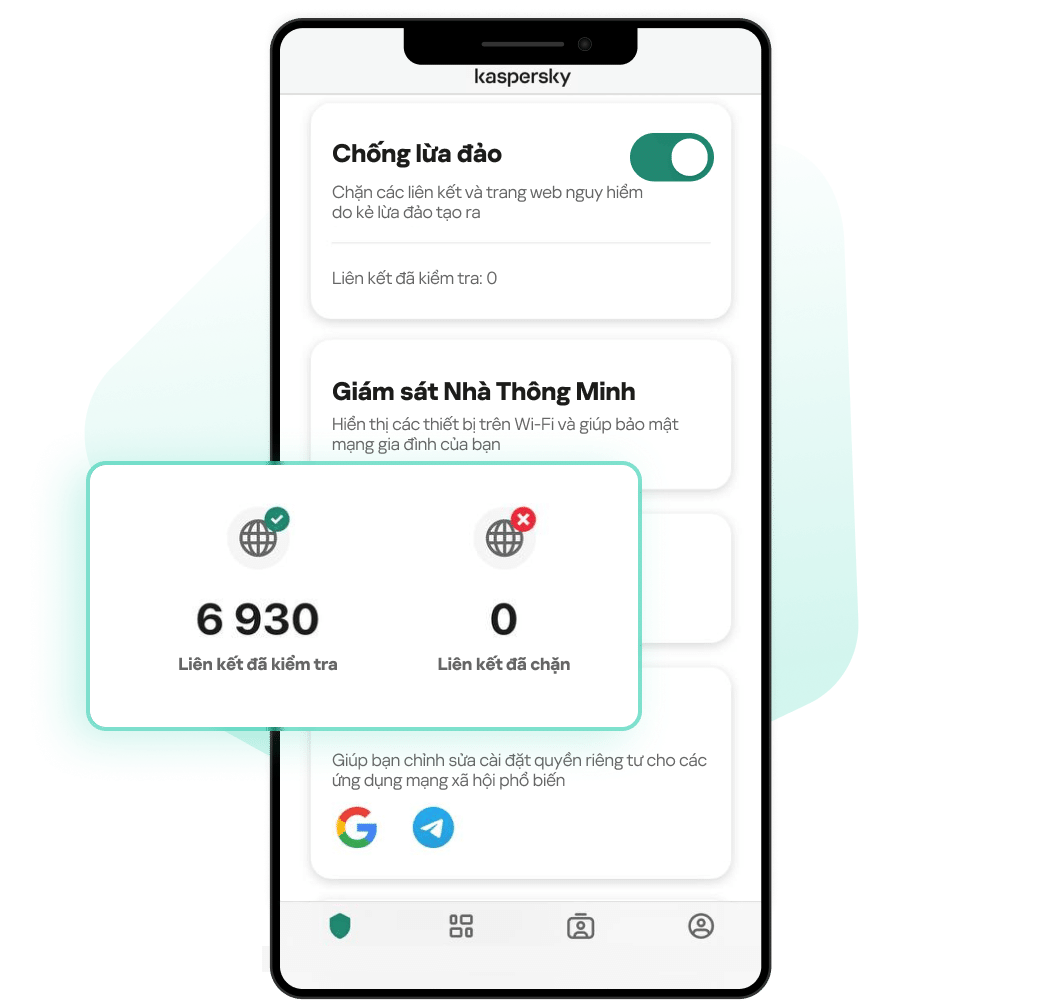 ³ Chức năng Kaspersky Premium for Android hiện tại có thể bị giới hạn trên một số thiết bị. Vui lòng truy cập https://support.kaspersky.com/help/Kaspersky/Android_knownissues/vi-VN/195522.htm để biết thêm chi tiết.